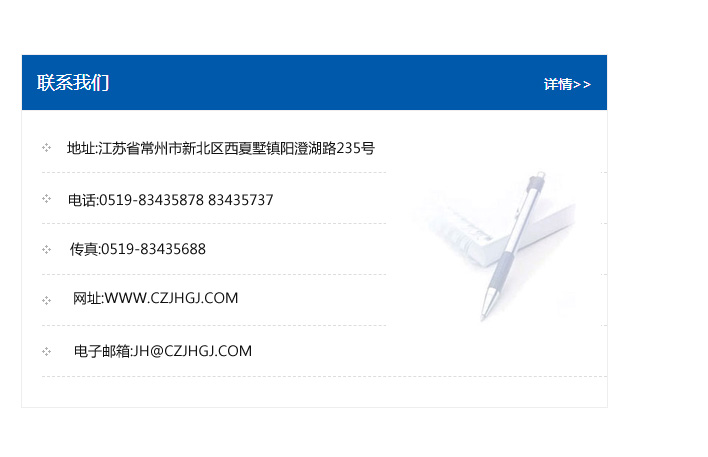 地址:常州市新北區友邦商務大廈1幢16、17層  電話:0519-85101652  傳真:0519-85112595  郵編:213022  網址:www.cz-jiayue_cn.wt25d.com  郵箱:xiajifengaa@163.com